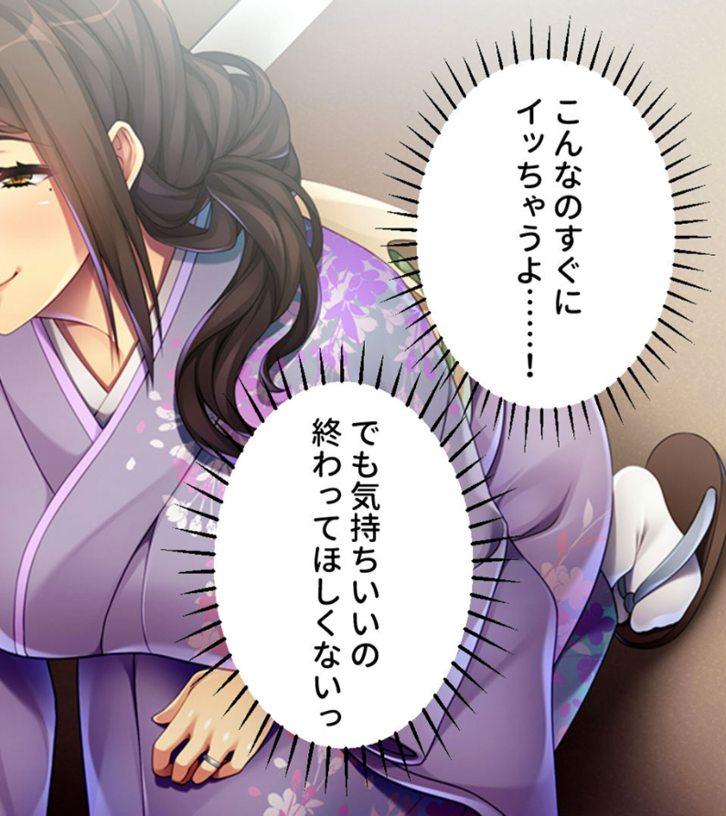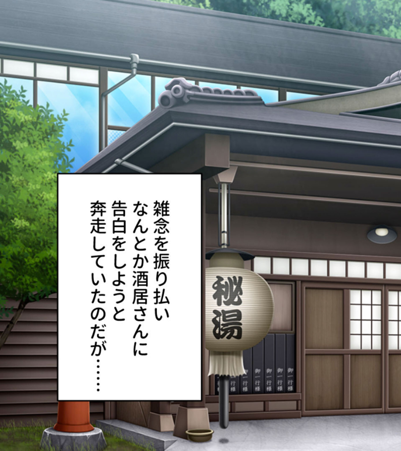 ’山羽舟遊(やまはしゅうゆう)’は、サークル仲間との旅行で、片想い中の酒居さんに告白しようと気合いを入れていた。 告白を成功させて、あわよくば脱童貞も…! しかしそれは、宿泊先の旅館の美人爆乳女将’安良川鞘子(あらかわさやこ)’に出会った事によって急展開を迎える。 夜中、鞘子のむっちりボディを思い出し勃起してしまった舟遊はトイレへと向かうが、そこで鞘子とばったり。 鞘子は舟遊が勃起していることに気付くと、優しく手を伸ばしてくる。 「ふふ、凄くビクビクしてる」 初めて人の手で、しかも鞘子にされたことで、すぐにイってしまう舟遊。 この出来事を境に、舟遊の中では酒居さんのことよりも鞘子の…
