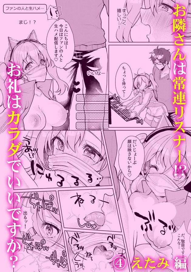 「今、ワタシ…配信中なのに…」雑談配信でバレないようにこっそりオナニー、これがワタシの日課。 リスナーにバレそうなのに、アソコがヌルヌルで、触る指止められないよぉ! あ、ヤバっ…今日もみんなに見られながら…イっちゃうッ!――そのほか『投げ銭のお礼にファンと生ハ●セックス』『大人のおもちゃレポだと聞いてたのに…!』など、全世界にあられもない姿を配信してしまうHな女の子たちをお届け。