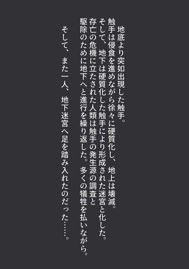 地底より現れた異形に対処するため、「ヤツら」の巣と化した地下へと足を踏み入れた、ピッチリスーツに身を包んだ女戦士・コノハ。襲いかかるクリーチャーを手にした戦斧で斬り伏せていく。しかし、媚薬毒液を全身に浴びせられ、更により強力に、局所的に作用する媚毒を性的に弱いところに注入されてしまう。あまりにも敏感になったその身体はちょっとした刺激に崩れ落ち、コノハはまともに動くことも出来なくなってしまう。そんな肉体を触手に容赦なく責められ、起こされる強烈な性感にコノハは文字通り、身も心も絡め取られていく。 懸命に抗い続けるコノハ。しかし、「ヤツら」はこの強く美しい雌を決して逃さない……。