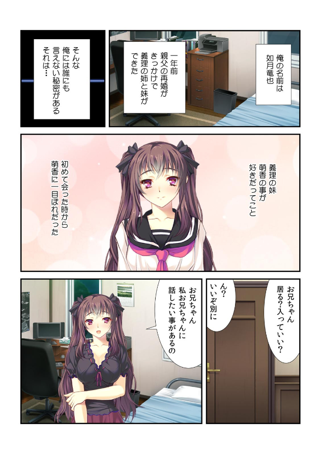 「おにいちゃん…中に出すなんてヤリすぎだよぉ…」父親の再婚がきっかけで、俺に超美人の姉と妹ができた! 義妹の萌香から「好きな人がいる」と相談を受け…!? う〜ん、付き合うならHの事も知らなきゃね? 俺が練習に付き合ってやるから、服を脱ぎなさい!――こうして萌香の初マンを堪能した俺だけど、あっさり姉の真美にバレちゃって!? こうなったら姉ちゃんのお口にも俺のムスコの味を覚えさせてヤる!!