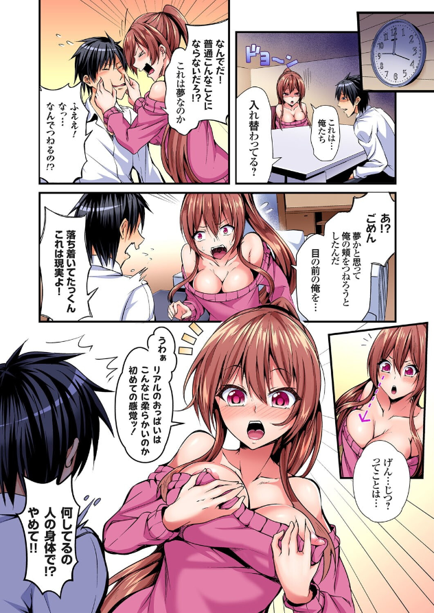 「目の前に俺がいる!?俺《私》たち…入れ替わってるー!?」 可愛い姉妹と暮らす拓哉の平和な日常は’くしゃみ’で一転…!? 突然、義姉の綾音と入れ替わってしまった拓哉は、戸惑いつつも綾音のエッチなおっぱいに興味深々♪ 一方、拓哉になった綾音は「たっくん!絶対私のカラダにエッチなことするでしょ!」と頭を悩ませ…。 アクシデントで一緒にお風呂に入った二人は、慣れない女のカラダで!男のカラダで!ドタバタ大騒ぎ! そのはずみで、大きく硬くなってしまったアソコをおさめるため二人は… 「変な気分なの…たっくん…えっち…しよっか?」「え…いいの!?」 身体が入れ替わった拓哉と綾音は元に戻れるのか…!? ※こ…