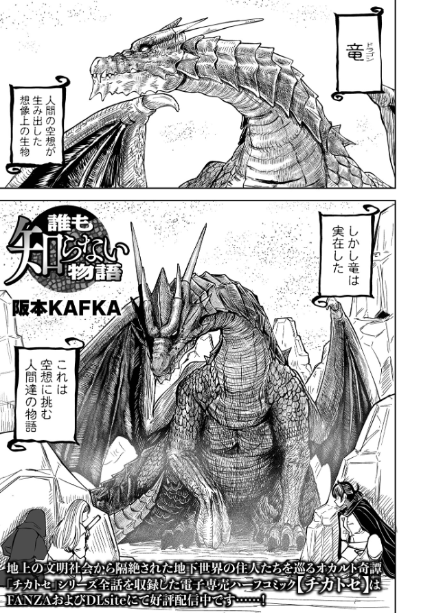 人間の空想が生み出した想像上の生物とされる 竜は実在していた…! 眼前の巨大な竜に圧倒 されつつも、歴史に名を残すために竜狩りを決行 する勇者グループが奮い立つ。しかし剣の刃は 鱗に弾かれ、メンバーは次々と屠られていき……。 地上の文明社会から隔絶された地下世界の住人達を 巡るオカルト奇譚「チカトセ」シリーズ全話を収録した 電子専売ハーフコミックス【チカトセ】はDLsiteおよび FANZAにて好評配信中です!! ※ この作品はアンソロジーコミック「リョナキング vol.33」に 収録されている作品の単話配信です。