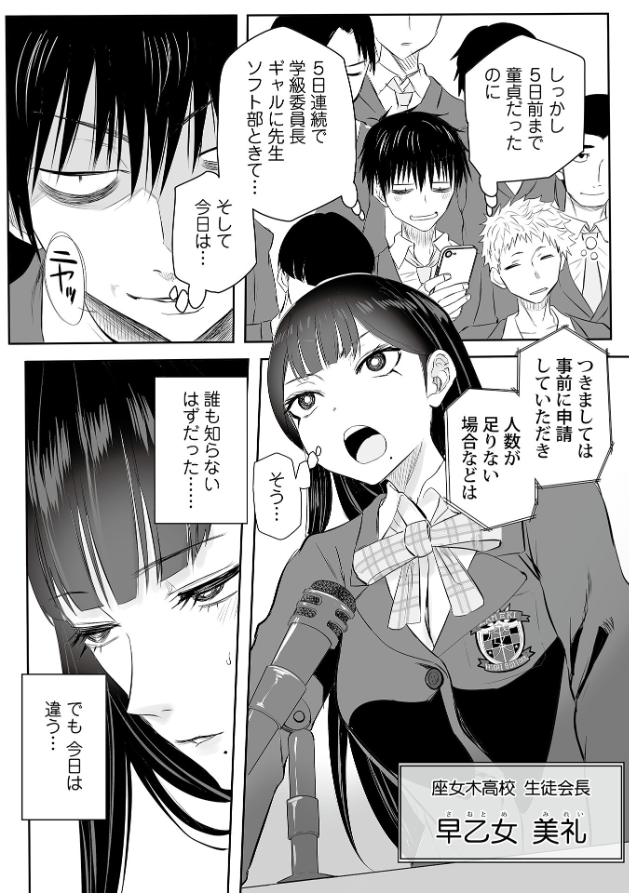 「これさえあればオレの人生は…!」 毎日退屈な学生生活を送る 見立 隆(みたて たかし)。 見た目はパっとせず帰宅部所属。友人や彼女もいない。 一方、唯一の幼馴染である諫早千年(いさはや ちとせ)はバスケ部のエースで、 性格もよく、男女問わずモテモテの人気者。 自分とは正反対の存在であるが故に、 そんな幼馴染すら嫌悪しており毎日退屈な生活を送っていた…。 ある朝、いつも通りの通学路を進んでいると一台のスマホを拾う。 これをきっかけに人生が一変するとも知らずに…! 登校時間ギリギリで、つい学校まで持って来てしまう隆だったが、 その拾ったスマホの画面を見て不思議に思っていた。 入れられたアプリ…