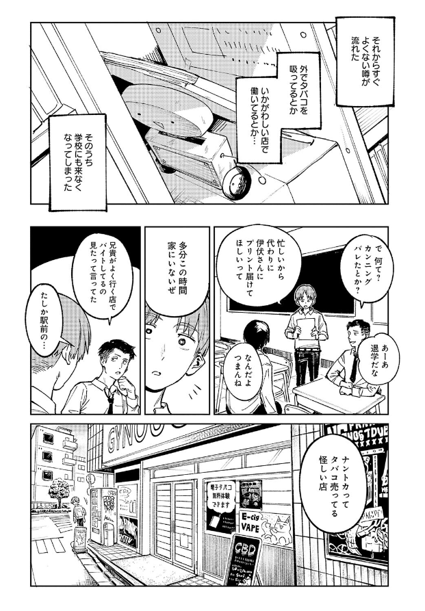 主人公・京本は、かつて仲が良かった不登校のクラスメイト・伊伏真夜にプリントを届けるよう頼まれる。彼女がバイトをしているという店を訪れると、そこには髪の毛を染めた気だるげな雰囲気の伊伏がいた。すっかり変わってしまった彼女にベ○プの新しいフレーバーを勧められた京本だったが、誤ったフレーバーを試して気分が悪くなってしまって――。気付いたら伊伏のベッドで横たわっていた!? 伊伏と2人きりの空間で、彼女が変わってしまった理由を知る京本。しかし同時に自分が伊伏に想いを寄せていたことにも気付き…。お互いの気持ちを知った初心な2人の不器用な初SEXがここに――。 ストーリーで魅せる超実力派・腐蝕先生が贈る、…