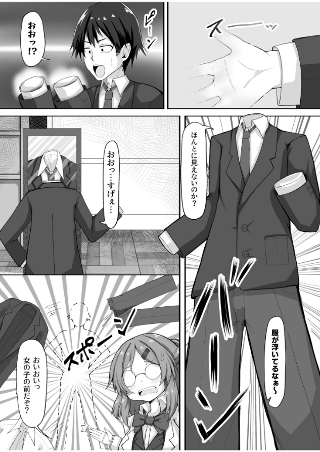 天才科学部部長に魔法の秘薬『透明になる薬』を実験体として飲まされた透(とおる) 『透明人間なんて男の夢じゃないか!!』 早速服を脱ぎ校内を徘徊し始めた 女子の前で裸(透明)になり大興奮 胸を凝視しスカートの中も覗き放題 そんな中、破廉恥に制服を着崩すクラスメイトのギャルが! 胸元の浮いた隙間をのぞき込めばそこにはちいなさ花園 同級生の乳首を見て興奮は止まらない!!!!! さらに、そこに現れたのは胸の大きな風紀員長の律(リツ) 清楚で真面目な彼女はよくよくみると最高の肉付きのえちえちボディ 風紀委員にふしだらなイタズラを仕掛けていく…