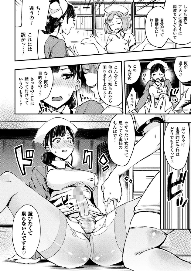 看護師の双葉なるには、「ふたなり」という秘密があった。 そんな自分の特異体質を、問題児として扱っていた部下の市原に知られてしまう。 「今までうざったく思ってた女を性的に痛めつけるって楽しくないですか?」と なるのペニスを焦らししゃぶり、さらに男性患者の顔に顔騎させて射精まで! あんなに嫌だったペニスなのに、今ではすっかり気持ちよさの虜……。 ※『敗北乙女エクスタシーVol.1』に掲載されている作品です。