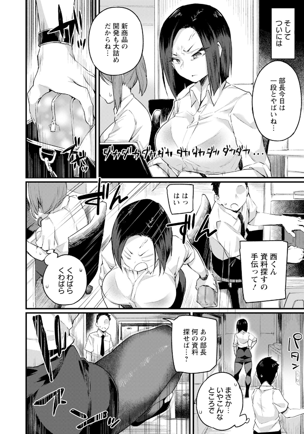 職場でも厳しいと有名な女上司の、隠れた秘密…。 それは、ストレスがたまると赤ちゃん化してしまうこと!! 今日もイライラの解消に協力している部下のチンポをおしゃぶり。 仕事も大詰めになったときは、とうとう職場でも甘えん坊になってしまい。