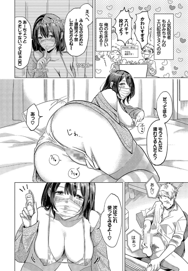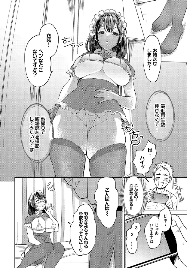 【推しのエロ配信者が同僚で…!? 視聴者にバレたらOUTなドキドキSEX!!】 バベル期待のニューカマー・江ノカが贈る、ナマ配信Hッ! 推しの配信のためにいつもと違い定時で帰宅する社畜の新井。 人気配信者のもなみは黒髪むっちりな巨乳で、彼女のエロ配信で抜くのが新井の日々の癒やしだった。 ある時新井は会社で地味目なメガネのOL・百田とぶつかったことがきっかけで、彼女がもなみだと知ることにっ! そして、彼女の家に呼ばれた新井はひょんなことから配信を手伝うことになり…!?