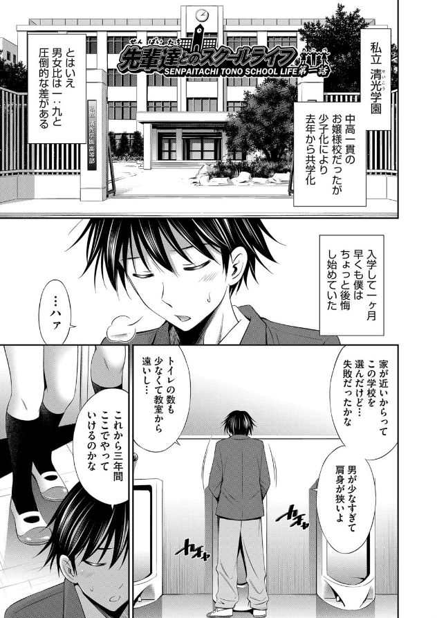 先輩達との学園生活By eromangaking / 10月 1, 2024 著者: 左橋レンヤ 今日から僕が先輩達のオナドール!?男女比1:9の清光学園入学で始まる、若松優斗の校内セックスライフ 先輩女生徒の楓と桜子からひと気のない教室に連れ込まれ強●的に筆下ろし!?童貞卒業と同時に二人の美少女の膣奥に生中出しでザーメンを絞り取られる!!COMIC阿吽誌上で人気を博したJKハーレム連載が待望のコミックスで登場!!