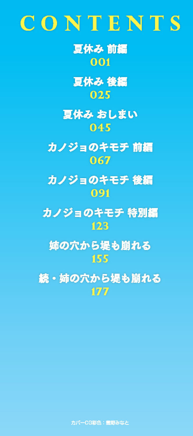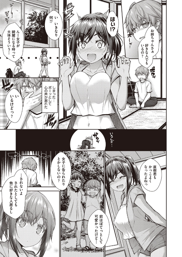 乳とりどりBy eromangaking / 10月 3, 2024 著者: 実々みみず 日焼けしたお姉ちゃんの水風船ようなおっぱいに初めて触れた夏―――。毎年のように従姉妹に会える夏休み、適齢期になった男女は自然とお互いが惹かれあい…「夏休み」シリーズなどなど、甘酸っぱく切ない恋と、初めての女性のカラダ ふわふわの柔らかいおっぱいがいっぱいの実々みみず3rd単行本!!