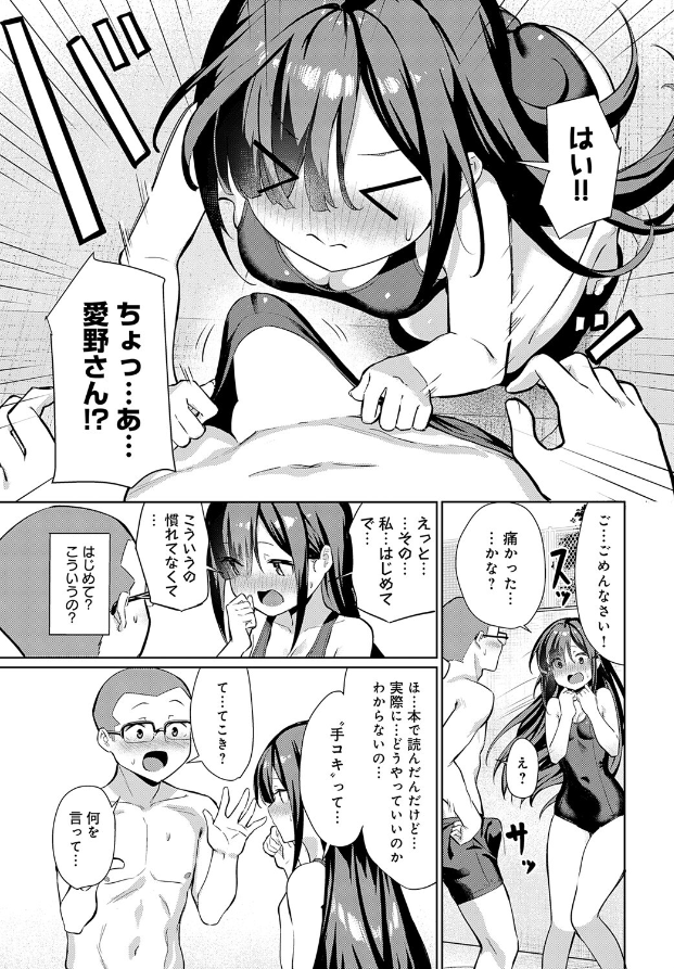 主人公・森木は、片思い中の控えめ清楚JK・初香と二人きりでプール掃除をすることになった。いいところを見せようと掃除に精を出す森木だったが、スク水姿の初香さんにムラっときてしまい思わず勃起! 慌てる森木だったが、勃起に気付いた初香が「私で興奮してくれるなんて嬉しい」と言い始めた――!? 実は森木のことが好きだった初香は、彼の勃起を治めるべくフェラや手コキや脇コキでご奉仕してくれるのだが…。ムラムラが最高潮に達した二人が挿入を我慢できるはずもなく――!? ぷにカワヒロインの金字塔・よこやまんじろう先生が描く、美少女委員長とプールサイドで甘々初えっち♪