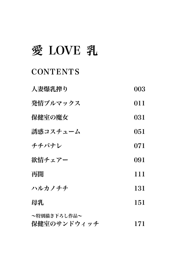 妖艶な魅力で男子生徒をたぶらかす保健室の先生や実の息子に蹂躙される爆乳ママ、幼馴染のブルマ姿と爆乳揺れが股間を刺激する!!汗だく汁だく乳まみれ…圧倒的乳圧で存在感を示す著者初単行本!!!