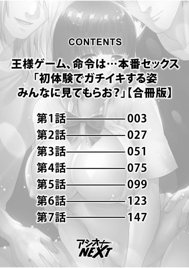 「嫌ならするよ?セックス。だってこれ王様ゲームだし」 友人の憂ちゃんに誘われて来た合コンで、ひょんなことから「王様ゲーム」をすることになった、あい。 飲み会ノリの男子に囲まれたテンションで、エッチな命令が続々とあいに下され、 しまいには「3番がガチセックス披露することー!」と、王様から命令が出て…! ※この作品は『王様ゲーム、命令は…本番セックス「初体験でガチイキする姿みんなに見てもらお?」』話売り作品の合冊版です。