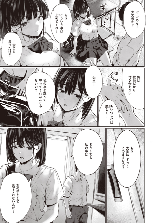 先生、こっち向いて。(単話)By eromangaking / 10月 6, 2024 著者: しゅる版 「今だけは先生である事忘れちゃお? ねっ?」 同級生の男子から偶然を装ってヤらしいことをされても、気に留めない佐藤(さとう)。下着姿の盗撮や部活中に勃起したチ●コを押し付けられても、彼女は拒否することなく受け入れていた。 想いを寄せる先生が、女のコとして見てくれるまで……。