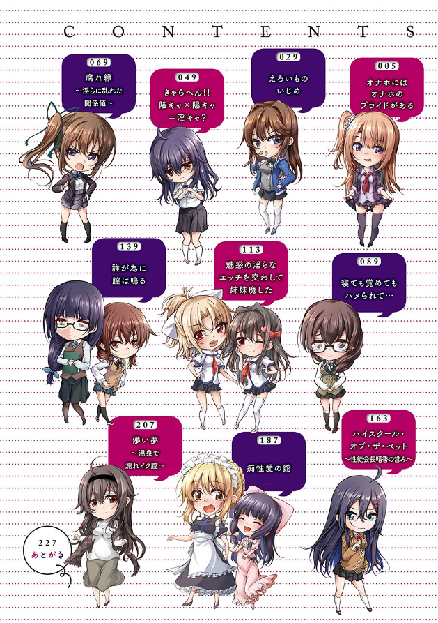 純潔は桃色に染まり乙女たちの性は咲き乱れる――!! クラスメイトにオナホ扱いされる美少女、彼氏のために不良の性処理をする眼鏡っ娘、男子トイレで教師に中出しされる生徒会長etc…! 一途で健気なJKたちの清純が散らされる作品が満載! 【収録作品】 ・オナホにはオナホのプライドがある クラスの美少女JKの弱みを握り俺だけのオナホにしちゃおう! ・えろいものいじめ 外見は最高、性格は最悪のイジメっ子JKに下僕の下剋上SEX! ・きゃらへん!! 陰キャ×陽キャ=淫キャ? 陰キャJKは、初めて男子に褒められたことで求められる快感に目覚めて――! ・腐れ縁〜淫らに乱れた関係値〜 それぞれに恋人…