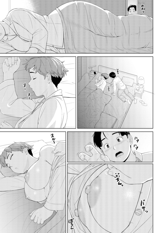 まもるは友人の自宅に来ていた。目当ては友人の母親で見た目が若く超爆乳の持ち主。 ちゃきちゃきした性格で、母親というより歳の差がある姉のよう。そんな彼女の隙を狙っていた…!! ◆明日も早朝から仕事だという母親は寝室に、友人が風呂に入ると彼は夫婦の寝室に向かい息を殺しながら忍び込んだ。 パジャマ姿の彼女は軽く寝息を立てていた…パジャマの上をはだけると大きな乳房が顔を出す。 旦那に触られてると勘違いし、無抵抗でいる彼女のズボンをゆっくり下ろした。 彼は下着の隙間に指を差し込み軽くめくると、女性器特有のすえた匂いを満喫し舌で吸い上げた…!! ※この作品は「コミック刺激的SQUIRT!! Vol.53…