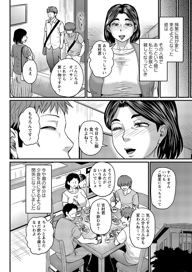熟女人妻は油断しがち?(単話)By eromangaking / 10月 31, 2024 著者: ジロウ 息子が連れてきた大学の友人と急速に親しくなっていく人妻。ある日、彼と二人きりになると急に男の顔となり、主人とは違うデカくて若い「女をダメ」にするチ●ポでメスの悦びに目覚めさせられてしまう…10月31日発売の最新単行本「食べごろ熟女」発売記念、巻頭カラー作品です!