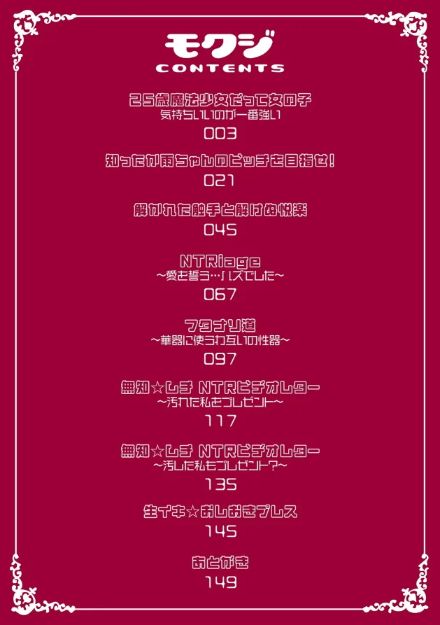 【電子書籍限定配信】 ジェニガタがキルタイムにて発表した ムチムチなヒロインたちの臭い立つ陵●作品を完全収録! ドスケベボディを淫靡に震わせ、絶頂するヒロインたち! エロ触手に捕らえられ、正義の心が折れる魔法少女(25歳)! 触手から人々を守るため戦うも、敗北し陵●されるエルフの女剣士!! 会社の女同僚の女性に弱みを握られ、浮気を強要されてしまう会社員!!! 沸き立つ雌のフェロモンをまき散らし、 快楽に墜ちる乙女たちのドスケベ作品集!! 【収録作品】 『25歳魔法少女だって女の子 気持ちいいのが一番強い……』 『知ったか雨ちゃんのビッチを目指せ!』 『解かれた触手と解けぬ悦楽』 『NTR…