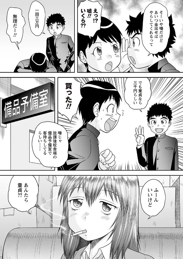 「童貞には3000円でヤラせてくれる」同級生野村さんの噂を聞いたヒロシ&アキラ。二人で野村さんにお金を渡し3Pを始める。童貞二人との同時SEXに野村さんも大興奮しアナル挿入を要求し童貞ちんぽ二本挿しでイクっ!!!