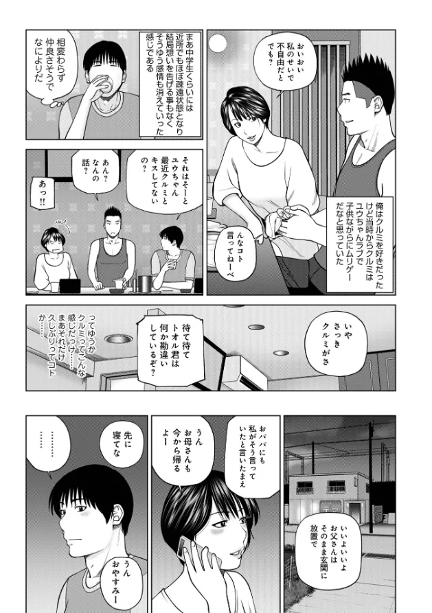ディープキスと寝取りに定評がある黒木秀彦の最新作。ふた組の夫婦が子連れで海水浴旅行。この男女達は夫婦交換の過去があった。(黒木秀彦/夫婦交換旅行で検索) 今回はあれから7年後の新たな旅。予想もつかない展開になっていく。収録作品は「続・夫婦交換旅行」「続・夫婦交換旅行第2話復活のタクヤ」「続・夫婦交換旅行第3話目覚め」「続・夫婦交換旅行第4話恋と愛」「続・夫婦交換旅行第5話修羅場」「続・夫婦交換旅行第6話最後の4P」その他読み切り「借金減額ベロベロチュー」「兄の奥さん」「初恋の人妻」「友達の欲情母ちゃん」