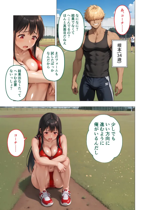もうすぐ先輩と付き合って1ヶ月になる。 陸上部の「大野さつき」先輩。 女の子らしいことに興味もなく、ただひたすら走ることだけに熱意をあげる先輩のことが、 僕は好きだった。 ここ最近、胸の脂肪が増えていることをどうしようもなく気にしていて…… そんなところもかわいくて大好きだ。 この関係がいつまでも続くものだと思っていた。 しかし、先輩が陸上部コーチの根本によるトレーニングを受けることになってから、 その関係は変わってしまう── 本編43P+イラスト11P収録! 【注意事項】 ※本作品のシチュエーションは全てフィクションです。登場する人物や設定等は、すべて架空のものとなります。 ※この作…